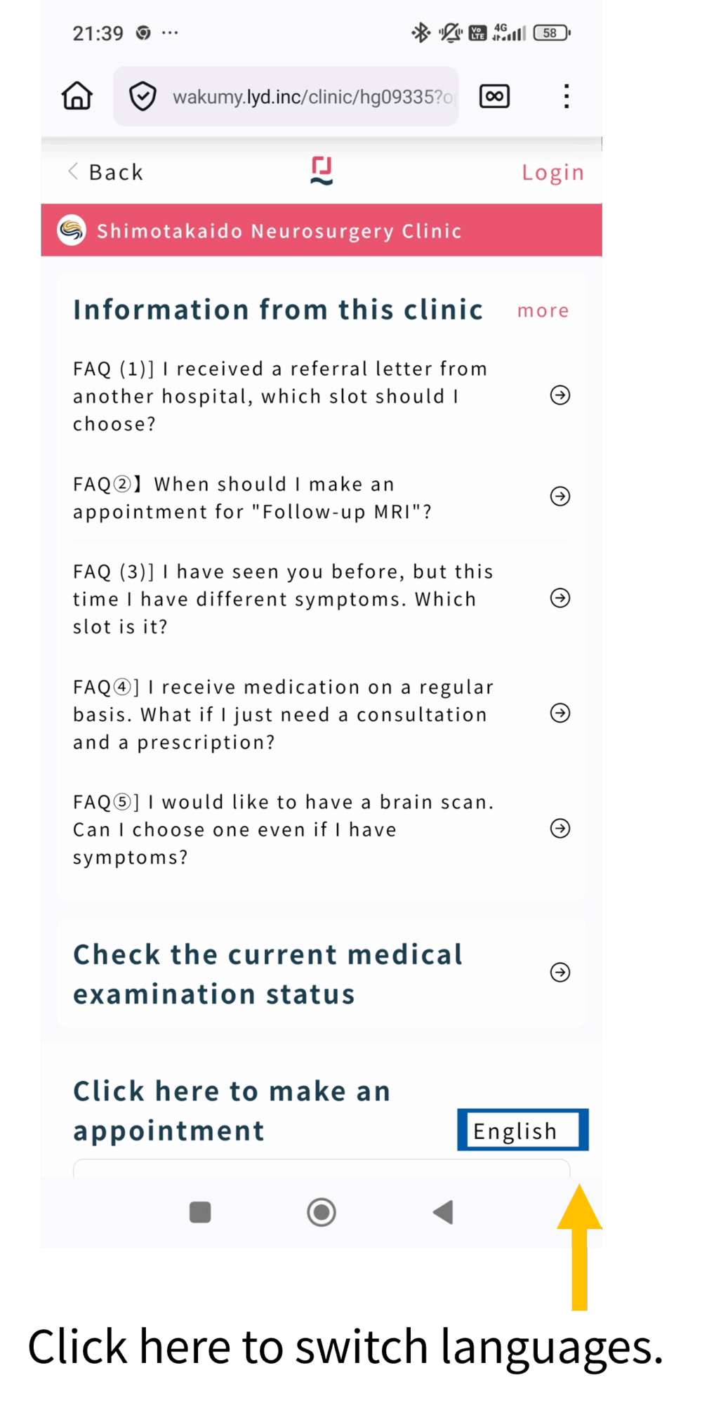 When booking online, please select your preferred language from the language menu at the bottom right of the patient reservation screen.